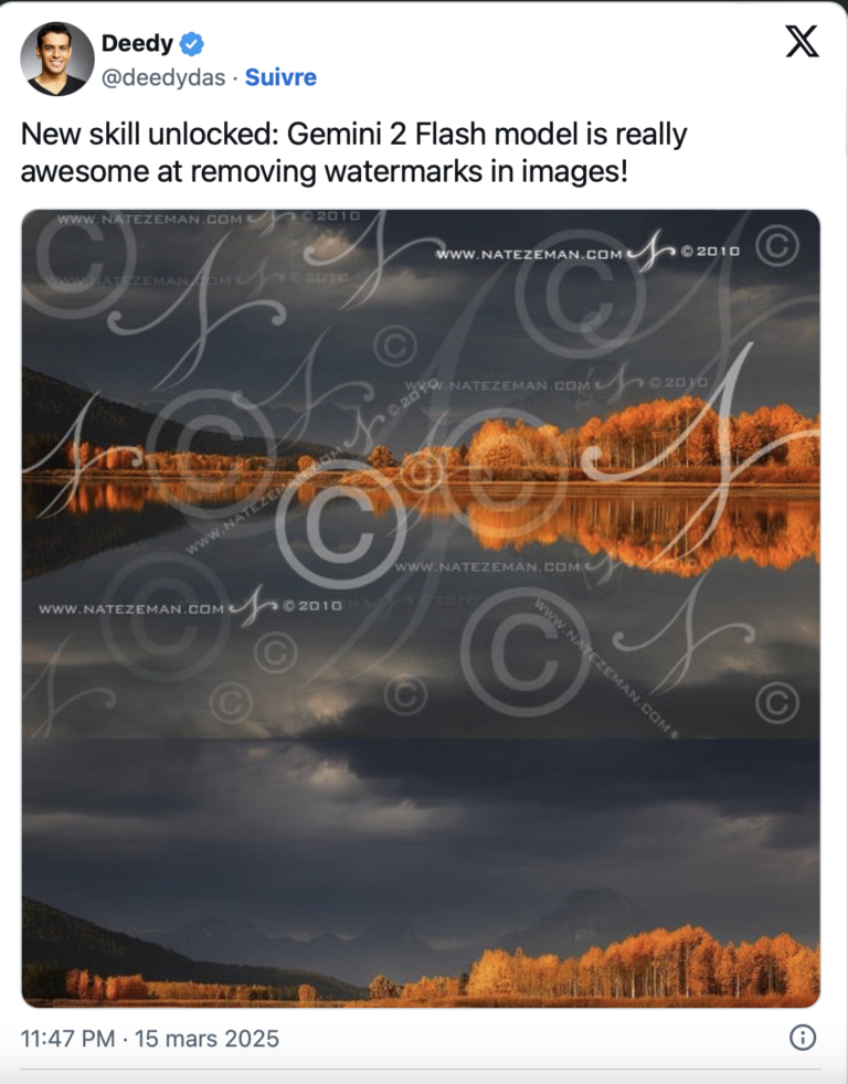 Google et controverse : Gemini 2.0 Flash permet d’effacer les filigranes des images
